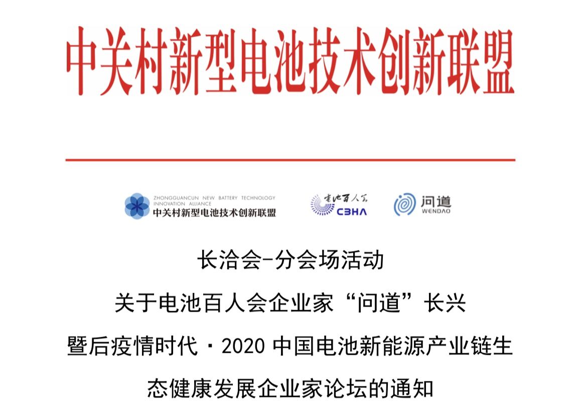 关于电池百人会企业家“问道”长兴暨后疫情时代·2020中国电池新能源产业链生态健康发展企业家论坛的通知